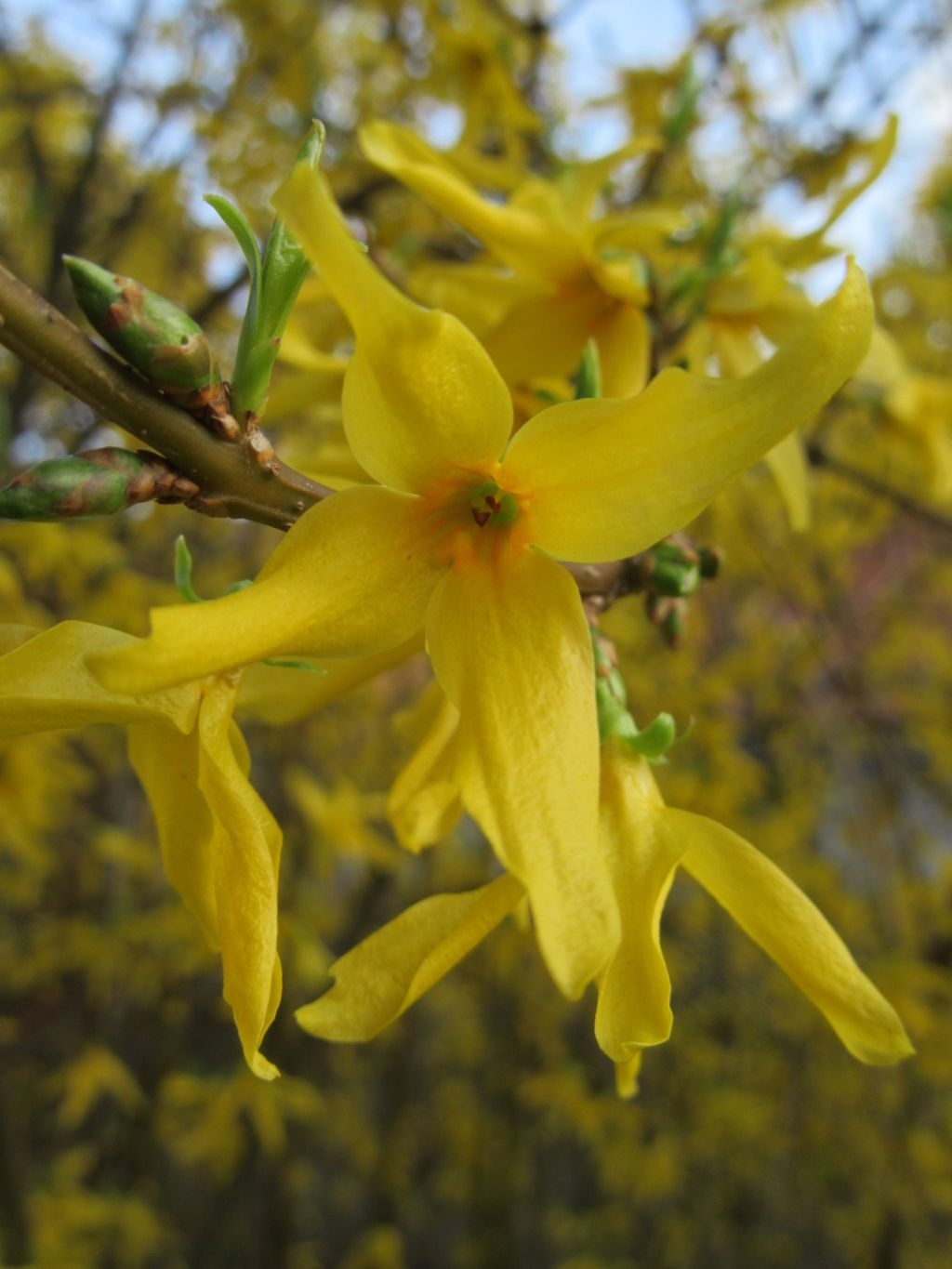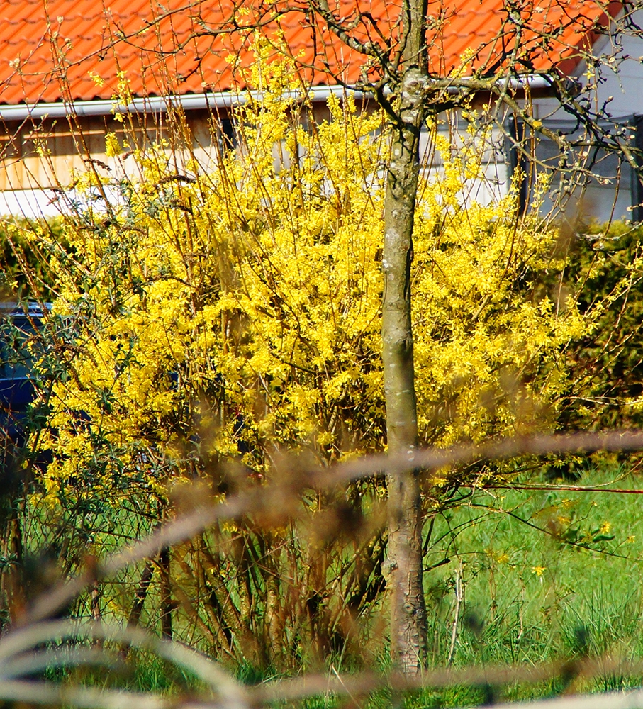 Beschreibung: Forsythien sind vor allem in heimischen Gärten und an Wegrändern zu finden. Die Forsythie ist ein aufrecht wachsender Strauch, der 3 bis 4 Meter hoch wird. Die Zweige sind glatt. Typisch für die Forsythie ist, dass im Frühjahr zunächst ihre sonnengelben, vierblättrigen Blüten austreiben, bevor sie grüne Blätter bildet. Die Blätter oval-länglich und gezackt. Im Herbst färbt sich das Laub der Forsythie grün-gelblich bis rötlich. Entgegen mancher Ratgeber ist die Forsythie für Kaninchen ungiftig und darf verfüttert werden. | ||||||||||