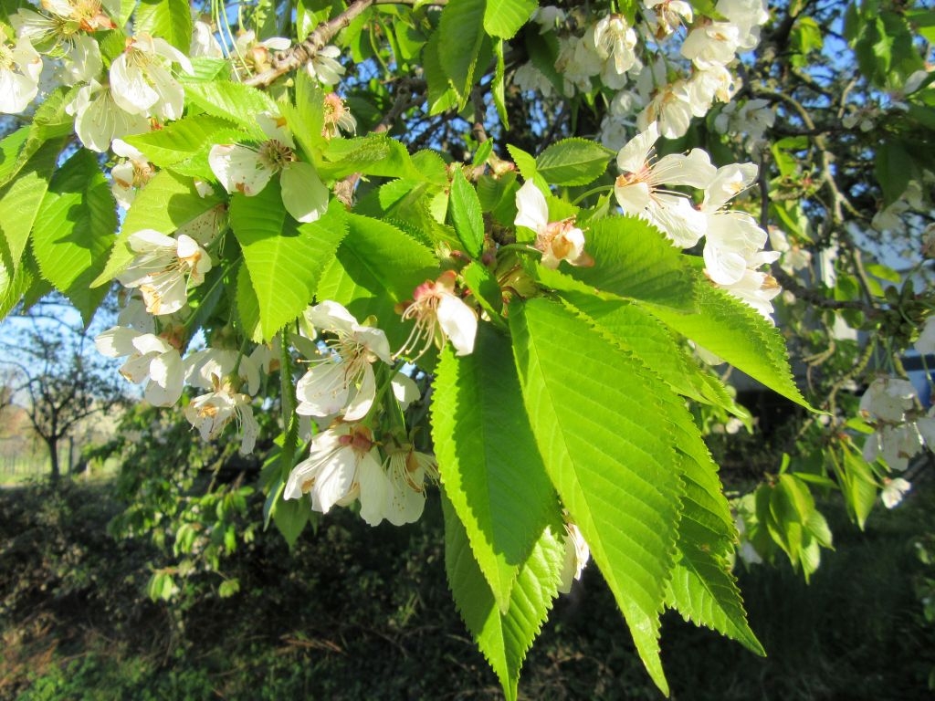 Beschreibung: Kirschen können je nach Art eine Höhe von bis zu 20 Metern erreichen. Sie stehen oft in Gärten und auf Wiesen, fühlen sich aber auch in Mischwäldern wohl. Entgegen des Mythos enthalten die Blätter und Zweige keine Blausäure. Die Blätter sind elliptisch und spitz mit stark gezähnten Blatträndern. Die Blattadern sind gut zu erkennen. Die Blütter wachsen in Bündeln am Zweig. Zur Blütezeit bilden sich weiße, fünfblättrige Blüten, die ebenfalls in Bündeln stehen. Der Stamm der Kirsche ist glatt und gräulich. Zweige der Kirsche dürfen regelmäßig verfüttert werden. Aufgrund des sehr hohen Zuckergehalts sollten die Früchte nur als seltenes Leckerchen angeboten werden. | ||||||||||