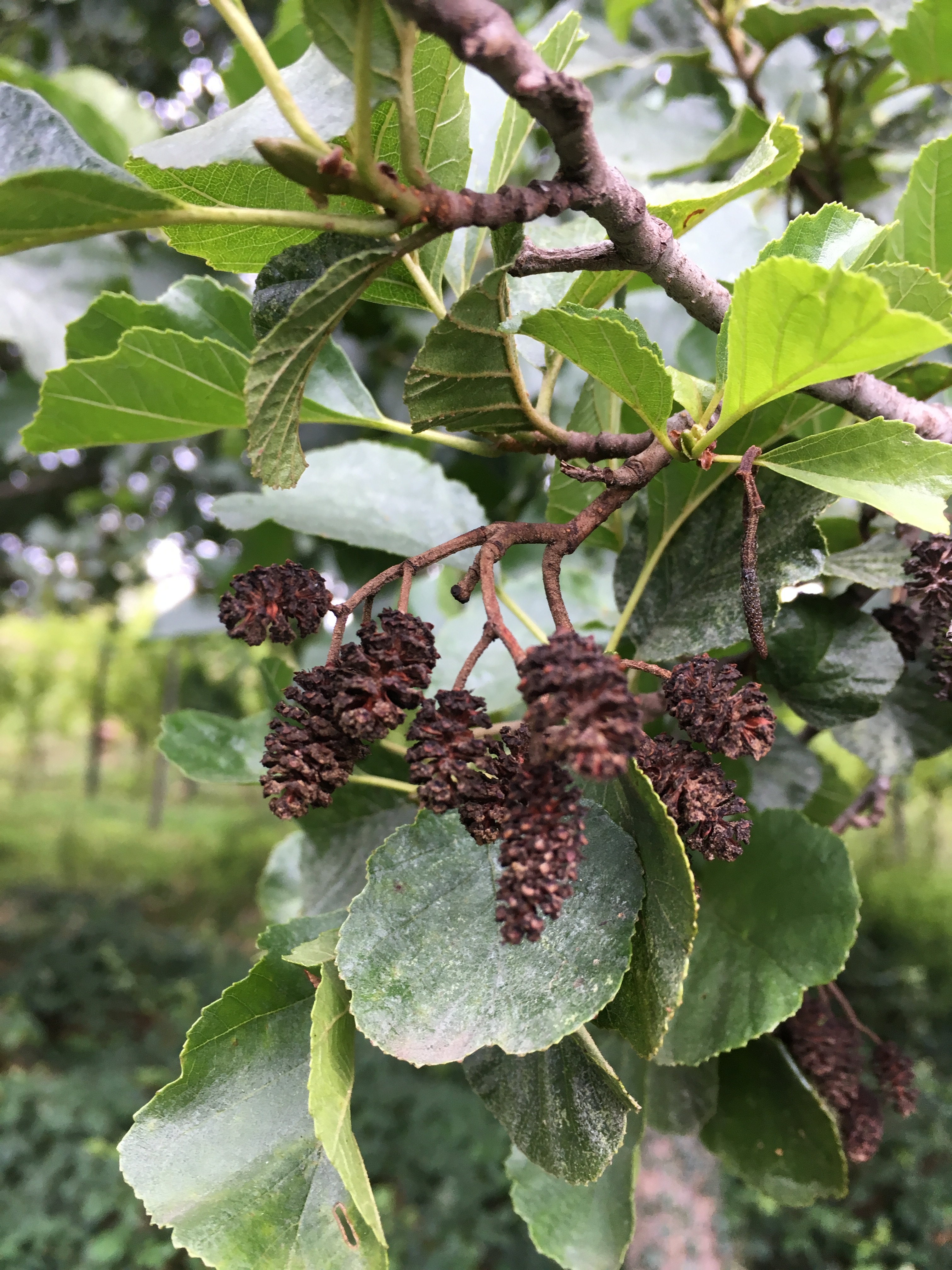 Beschreibung: Die Erle fühlt sich in der Nähe von Flussläufen wohl. Sie hat rundliche Blätter mit deutlich sichtbaren Blattadern und leicht gewellten Rändern. Auffällig ist, dass ihr die Blattspitze fehlt. Das lässt sie auch gut von der Hasel oder Buche unterscheiden. Erlenzweige können gefüttert werden. | |||||||||