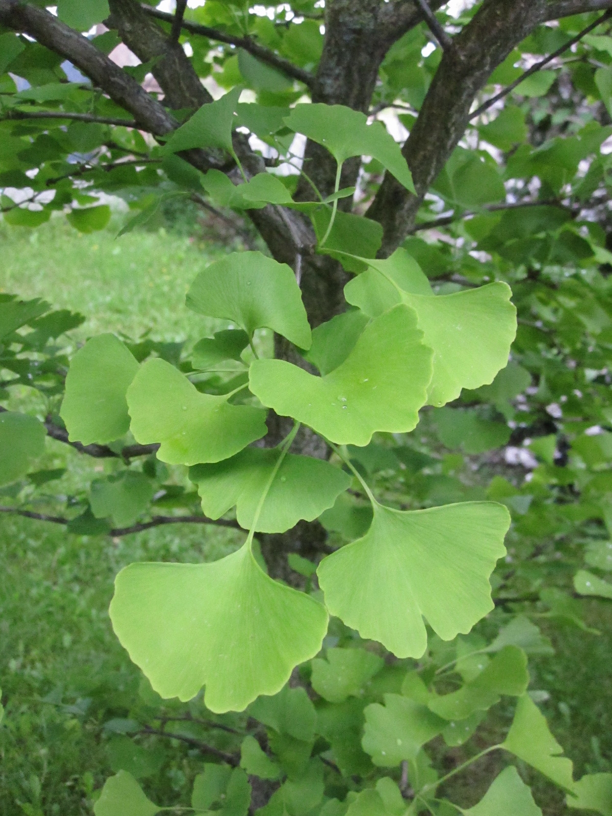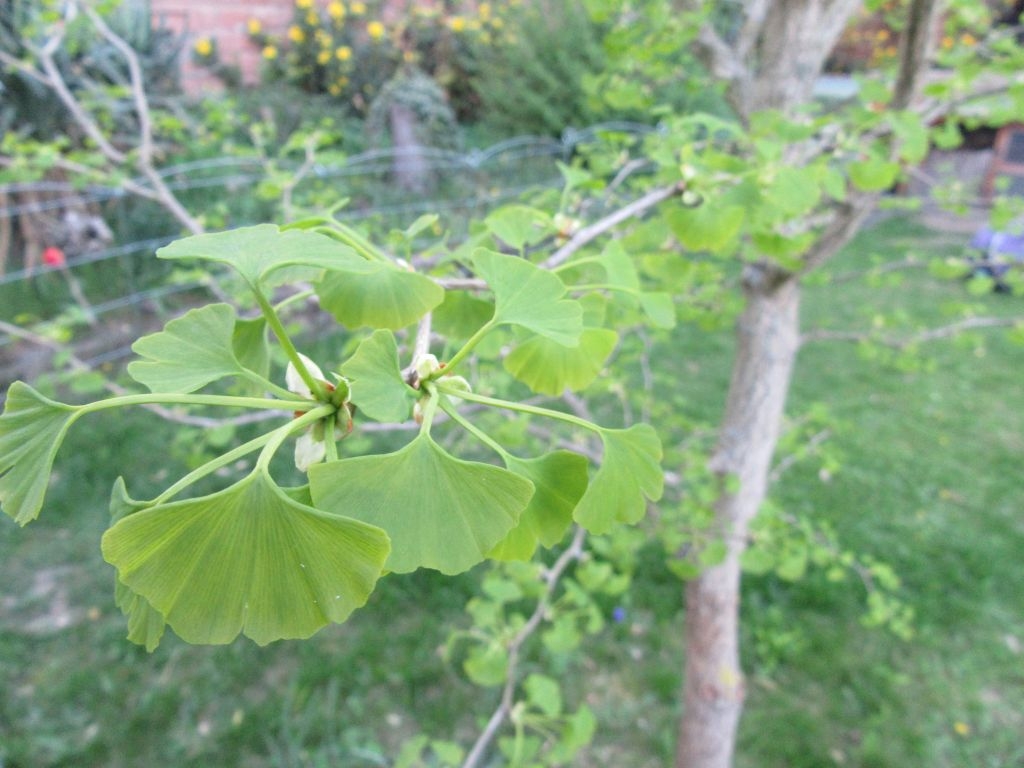 Beschreibung: Ginkgo trägt fächerförmige, in der Mitte eingekerbte Blätter in hellgrün, die in Büscheln am Zweig sitzen. Die Zweige sind dunkelgrau-braun. Der männliche Ginkgo bildet zur Blütezeit Kätzchen. Im Herbst färbt sich das Laub goldgelb. Ginkgo soll eine durchblutungsfördernde Wirkung haben. Ginkgozweige und -blätter dürfen verfüttert werden. | |||||
