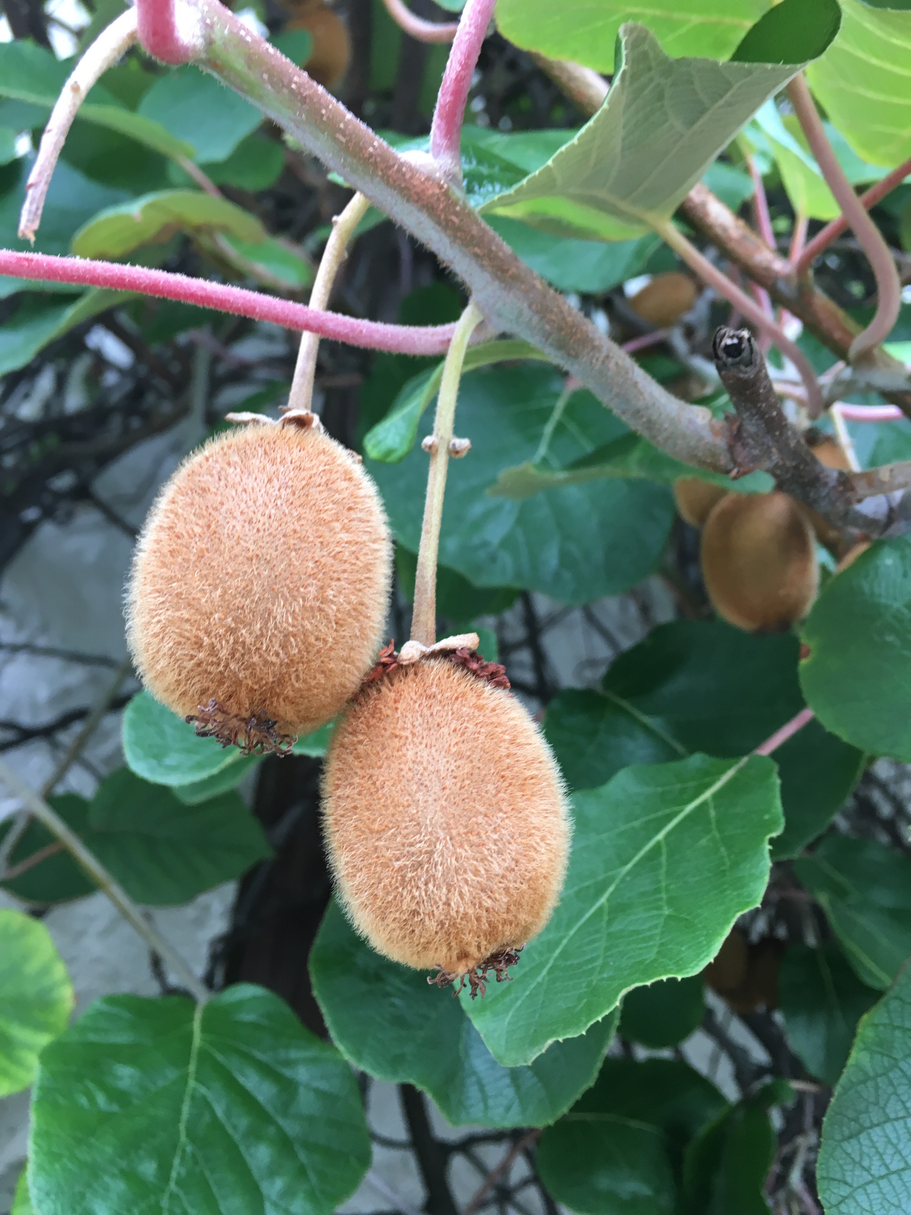 Beschreibung: Die Kiwi ist eine Schlingpflanze mit oval bis herzförmigen Blättern. Diese sind wechselständig an den Zweigen angeordnet. Sowohl die jungen Zweige als auch die Blätter sind behaart. Während die älteren Zweige der Kiwi verholen, sind die jüngeren Zweige auffallen rötlich. Die weibliche Pflanze entwickelt zur Blütezeit weiße, fünfblättrige Blüten mit gelben Pollenfäden. Kiwizweige sind verfütterbar. Die Früchte sollten aufgrund des hohen Zuckergehalts und ihrer Säure nur selten angeboten werden. Entgegen des Mythos hilft Kiwi nicht präventiv gegen Haarballen, da die Enzyme im Magen zerstört werden. Kiwizweige dürfen gefüttert werden. | |||||||