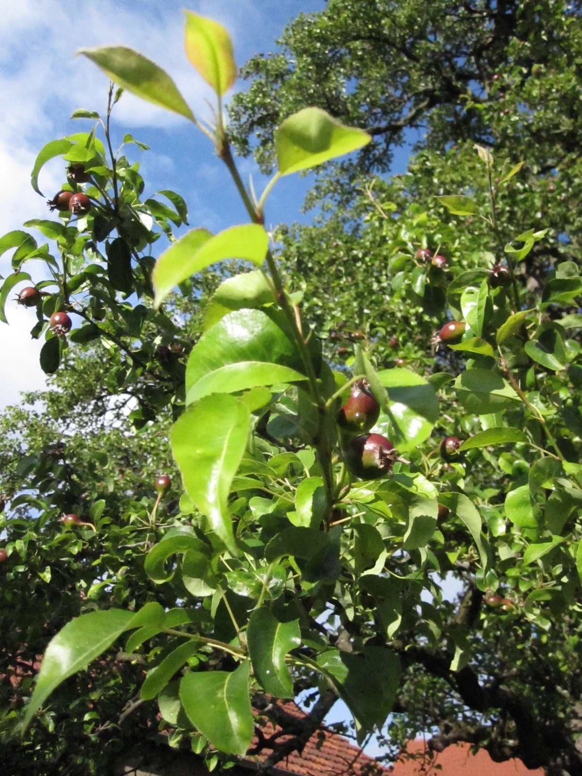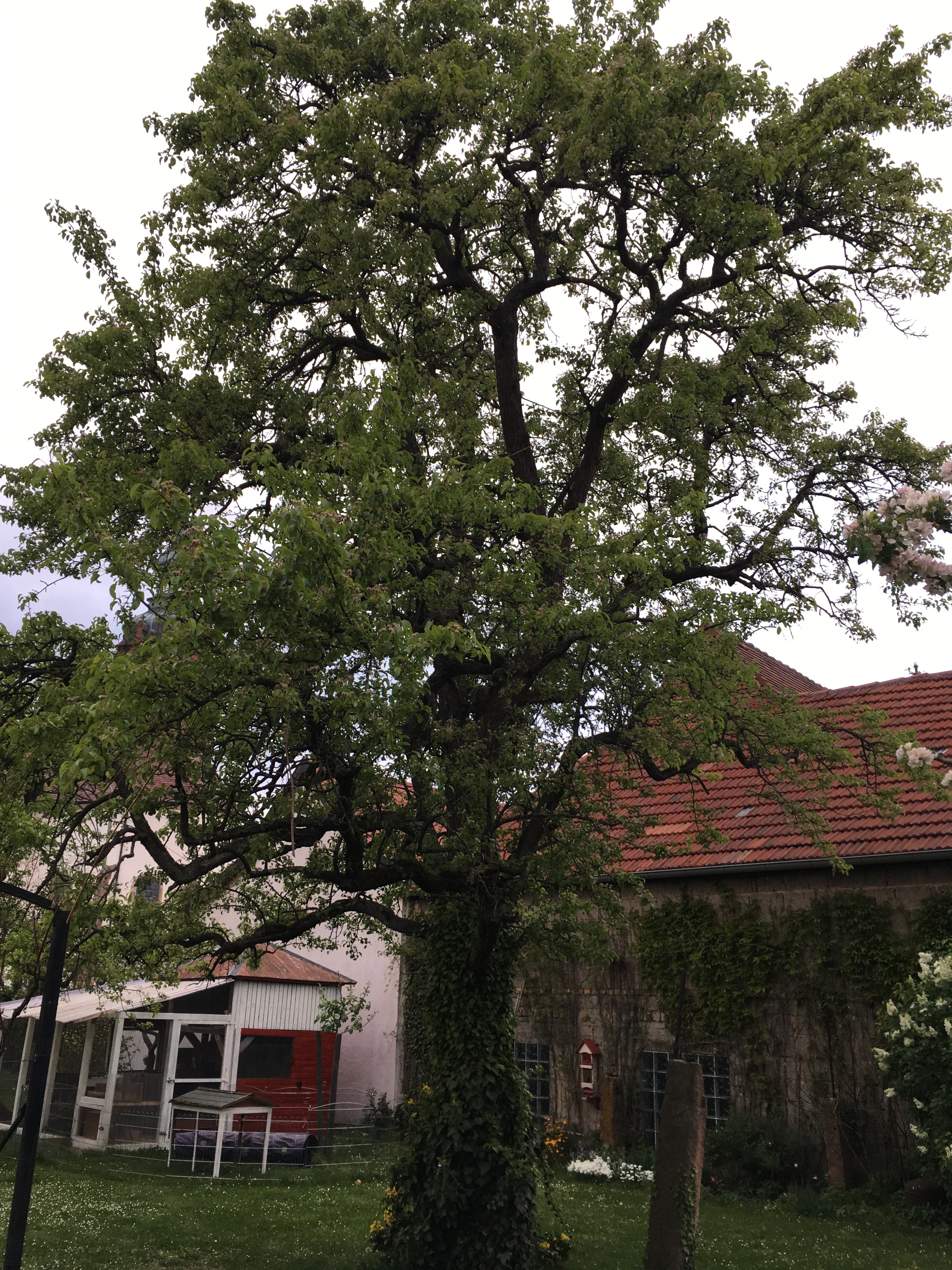 Beschreibung: Birnen findet man in vielen Gärten, aber auch oft an Wegesrändern. Die eher kleineren und oft fett-glänzenden Blätter sitzen büschelweise und gestielt an den Zweigen. Zur Blütezeit trägt die Birne fünf-blättrige, weiße Blüten. Alle Bestandteile der Birne dürfen verfüttert werden. Aufgrund des Hohen Zuckeranteils dürfen die Früchte des Baums nur in geringer Menge angeboten werden. | |||||||