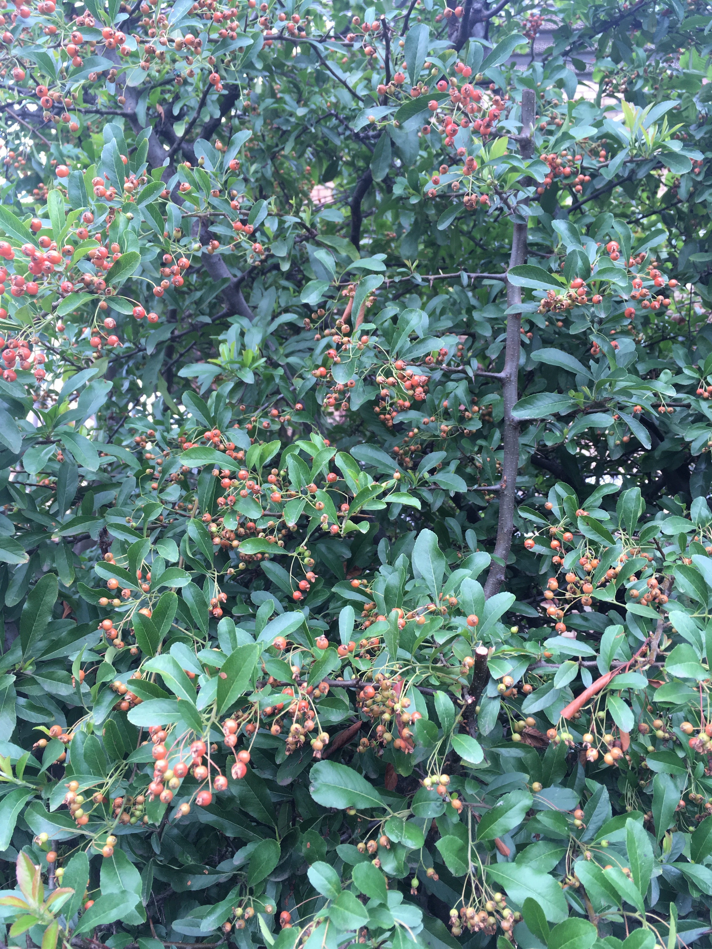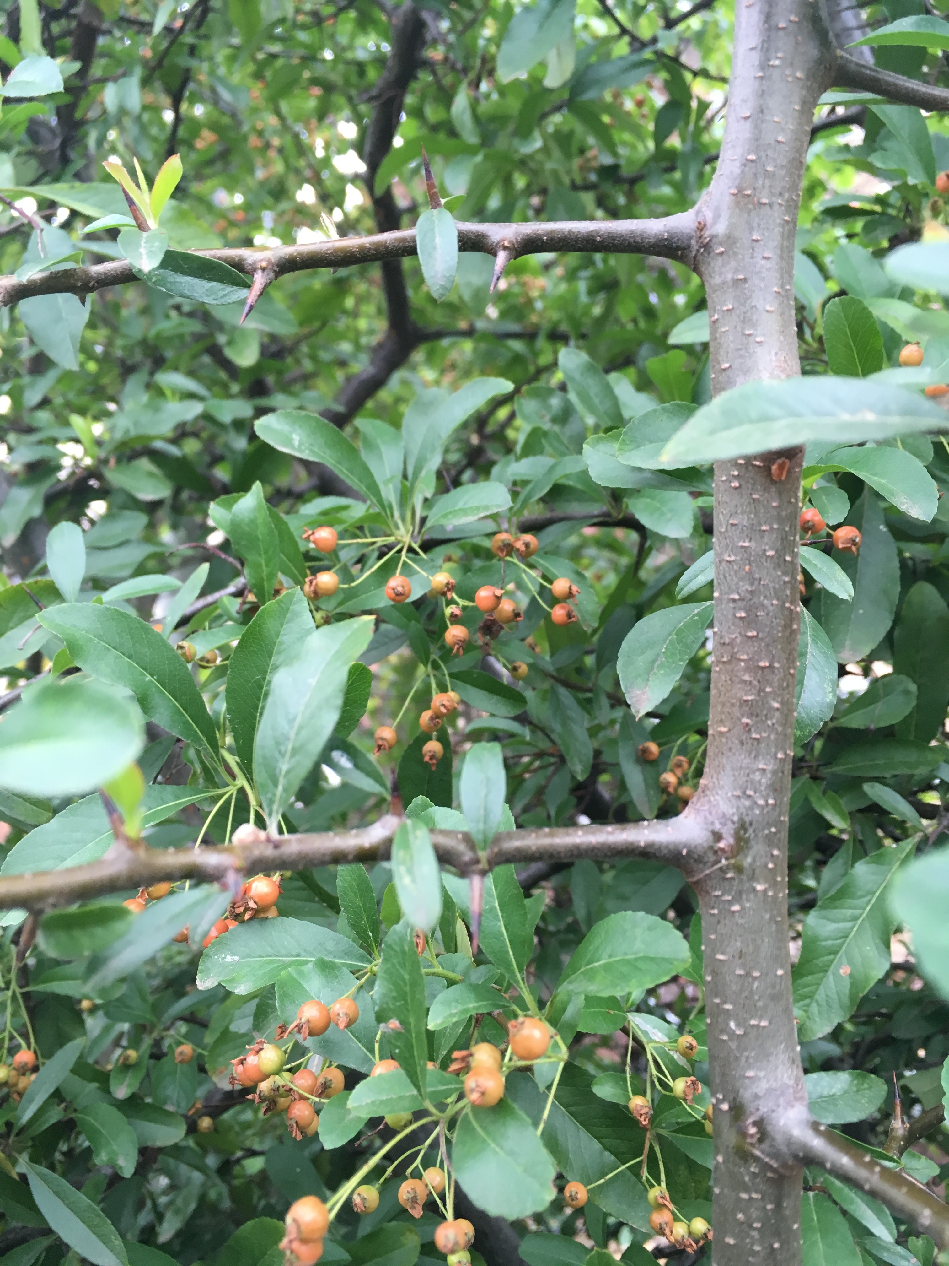 Beschreibung: Feuerdorn ist mit dem Sanddorn verwandt. Er ist ein 4 bis 6 Meter hoher Strauch, der gerne als Hecken in Gärten verwendet wird. Er hat kurze, ovale und gestielte Blätter mit glatten bis gesägten Rändern. Der Feuerdorn hat gut sichtbare Dornen. Zur Blütezeit trägt der Feuerdorn weiße Blüten. Die reifen Früchte hängen in Dolden an den Zweigen und sind orange-rot. Die Früchte des Feuerdorn gelten als schwach giftig. Die Zweige und Blätter dürfen jedoch verfüttert werden. | ||||||