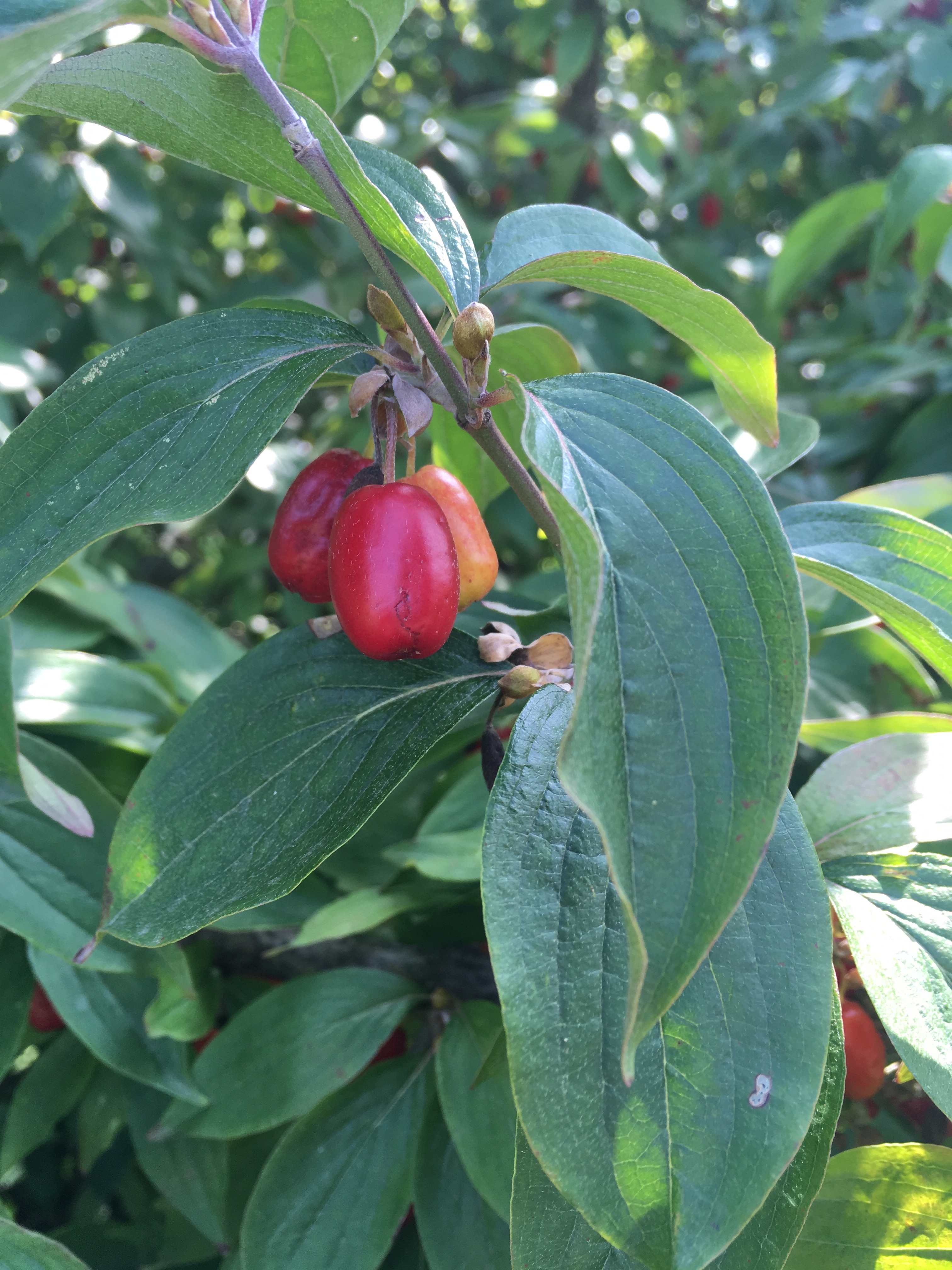 Beschreibung: Die Kornelkirsche ist eine Unterart des Hartriegels. Die Zweige dürfen im guten Gemisch angeboten werden. Die Kornelkirsche mag sonnige Standorte, lichtere Wälder oder Heckenplätze. Sie kann als großer Strauch oder Baum vorkommen. Sie besitzt eiförmige, gegenständige Blätter mit deutlich sichtbaren Blattadern. Zur Blütezeit im Frühling trägt sie gelbe, doldenförmige Blüten an den Zweigspitzen. Ihre Steinfrüchte sind im reifen Zustand dunkelrot bis schwarzrot und länglich. | ||||||