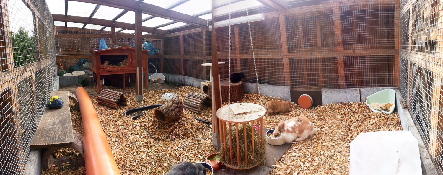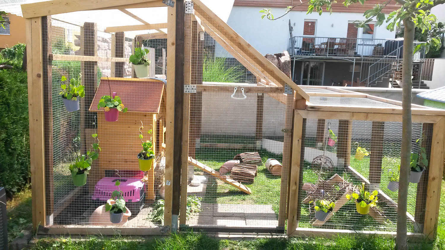 - Flächen mit unterschiedlichen Bodenbelägen sehen nicht nur optisch ansprechend aus, sie tragen auch zu vielfältigen Belastung der Kaninchenpfoten bei.