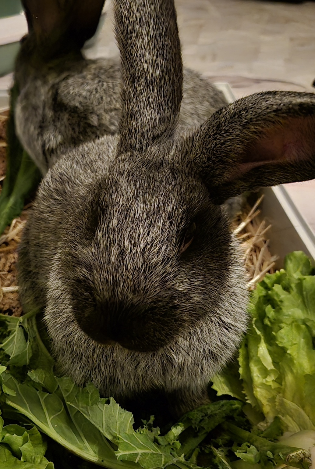 | Informationen: | Luca und Matti stammen aus einem Notfall mit 18 Kaninchen in Einzelbuchtenhaltung. Die Halterin konnte aus privaten Gründen die Kaninchen nicht mehr versorgen und den Tieren drohte die Schlachtung. Also durften die zwei zu uns ziehen und wurden kastriert. Luca durfte erstmal auf der Pflegestelle zur Ruhe kommen und wurde gegen Parasiten behandelt. Er wurde nun vollständig geimpft (Myxo, RHD 1, 2 und neue Variante) und darf sich auf die Suche nach seinem Für-Immer-Zuhause machen. Luca ist ein neugieriges und aufgeschlossenes Kerlchen und genießt inzwischen auch mal ein paar Streicheleinheiten. Er befindet sich aktuell in Innenhaltung, weshalb er aufgrund der Jahreszeit momentan nicht nach Außen ziehen kann. Er kann entweder gemeinsam mit seinem Bruder vermittelt werden oder einzeln zu mindestens einem vorhandenen Partnertier. Meldet Euch gern, wenn Ihr Euch in den inzwischen knapp 5 kg schweren kleinen Mann verliebt habt. |