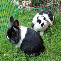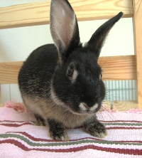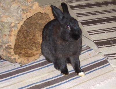 Eddi (1,8 kg) war bereits einmal durch uns vermittelt. Aufgrund privater Veränderungen seiner Besitzer wurde er gemeinsam mit seiner Partnerin Ebony wieder in unsere Obhut übernommen. Ursprünglich stammt Eddi aus dem Notfall auf einem bayrischen Reiterhof. Eddi ist ein schüchterner, aber lieber Kaninchenmann. Hat er erst einmal Vertrauen gefasst, genießt er menschliche Zuwendung sehr. Den Transport ins neue Zuhause nahm er gelassen, hoppelte dort umher als hätte er schon immer bei Fritzie und ihren Zweibeinern gewohnt und auch zwischen Fritzie und Eddi wird das Verhältnis von Tag zu Tag besser.