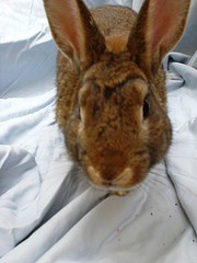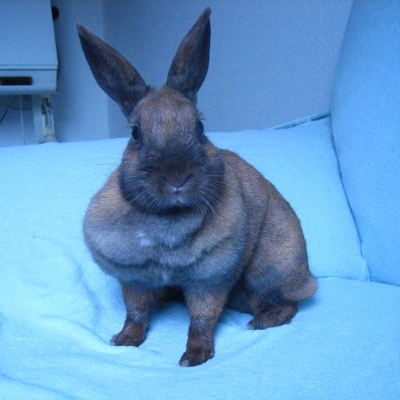 Krümel (2,0 kg) wurde 2005 von uns vermittelt und kam nun wieder zu uns zurück, gemeinsam mit seiner Partnerin Babsi. Krümel ist ein Charmeur, der Zwei- und Vierbeiner gleichermaßen verzaubert. Er mag Streifzüge in die nähere Umgebung, leckeres Futter und Kaninchendamen, die nach dem Toben mit ihm in der Ecke dösen. Krümel ist neugierig, zutraulich und manchmal etwas stürmisch. Streicheleinheiten nimmt er allerdings erst nach angemessener Vertrauenszeit entgegen. Mit seiner bisherigen Partnerin Babsi ist er nun umgezogen in ein neues Zuhause, wo er erfreut weitere Kaninchendamen vorgefunden hat.