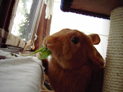 Snoopy (2,7 kg) wurde von einer Tierfreundin aus einem vollkommen dunklen Kartoffelkeller gerettet . Dort lebte er 3 Jahre lang in einem winzigen Käfig. Natürlich hat sich durch das lange eingesperrt sein die Muskulatur seiner Hinterläufe zurückgebildet, dies wird sich aber in absehbarer Zeit durch viel Auslauf von selbst beheben. Snoopy ist ein aufgewecktes Kerlchen das einem auf Schritt und Tritt folgt. Er ist erstaunlich zutraulich und lässt sich problemlos die Krallen schneiden und bürsten. Kaum vom Trockenfutter entwöhnt ging es für Snoopy ins neue Zuhause. Das erste Aufeinandertreffen zwischen ihm und Kaninchendame Lilly fiel recht heftig aus, aber es hat sich gelohnt nicht abzubrechen. Kurze Zeit später hat Lilly das Weglaufen bleiben lassen und hat sich Snoopys ausgiebigem Putzen hingegeben. Inzwischen sind die Beiden ein eingespieltes Team. Nur Snoopys lautes Schnarchen irritiert seine neue Möhrenspenderin noch, die sich das Zimmer mit dem sägenden Langohren teilen muss.