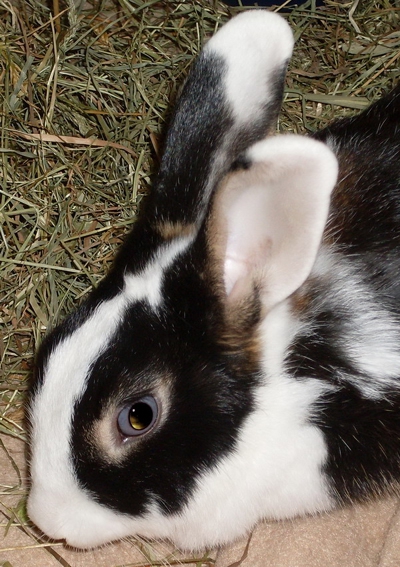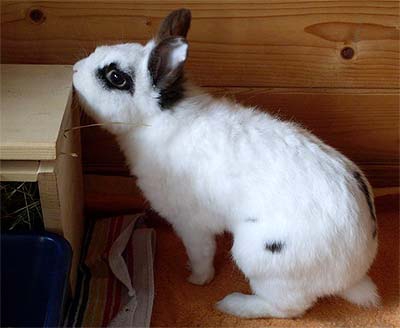 Jacky ist eine aufgeweckte, fröhliche Kaninchendame, die wir vom Tierheim Goslar übernommen haben, da sie an einem Abszess operiert war und intensive Pflege benötigte. Inzwischen ist Jacky aber wieder fast genesen und mit jedem Tag mehr zeigt sie ihre Lebensfreude und Liebenswürdigkeit. Vielmehr geniesst sie die Nähe und Aufmerksamkeit ihrer Möhrensspender und auch die Streicheleinheiten werden inziwschen von ihr eingefordert, denn sie wartet schon ungeduldig an der Tür, wenn man hereinkommt. Nach kurzem Aufenthalt bei uns durfte Jacky zu einem einsamen Rammler Pedro ziehen. Dieser genießt sichtlich Jackys Nähe und auch die kleine Lady kuschelt gerne mit ihrem neuen Lebenspartner und animiert ihn zum Heu fressen.