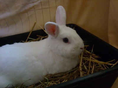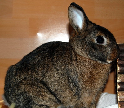 Rowena (1,1 kg) kam als Abgabetier zu uns, weil die Besitzerin mit Rowena´s Haltung überfordert war. Rowena ist eine sehr ängstliche Häsin, die erst Vertrauen zu Menschen fassen muss. Leider hat sie anscheinend eine Allergie auf Kleintierstreu, was bei ihr zu wunden Läufen geführt hat. Mit der entsprechenden Behandlung und passender Einstreu ist dies aber schnell in den Griff zu kriegen. Rowena braucht noch viel Zeit und erfahrene Kaninchenhalter um ihre Vergangenheit zu vergessen. Daher freut es uns besonders, dass sie bei ihrer Pflegestelle bleiben darf und dort bereits Kaninchenanschluss gefunden hat.
