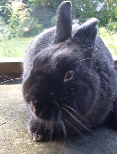 Nelly (2 kg) wurde zum Einschläfern in eine Tierarztpraxis gebracht. Die Besitzer wollten sie nicht mehr, weil sie angeblich aggressiv war. Die Tierärztin weigerte sich, nahm Nelly auf und kastrierte sie. Dann wurde Nelly in unsere Obhut übergeben, damit wir für sie ein schönes Zuhause suchen. Und so lange dauerte das gar nicht, dann konnte Nelly zu einem einsamen Kaninchenmann ziehen. Auf den ersten Blick kann man die beiden kaum unterscheiden, nur die kleine Wamme verrät Nelly, die wahrlich keine Kostverächterin ist. Mit ihrem Kaninchenmann versteht sie sich gut, bereits nach wenigen Tagen meint man ein altes Ehepaar vor sich zu haben, nur Kuscheln ist noch nicht so ganz nach Nellys Geschmack. Aber sie findet ihre neuen Möhrenspender, das Futterangebot und ihr neues Leben ganz offensichtlich gut gewählt.