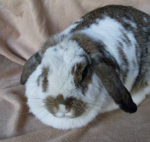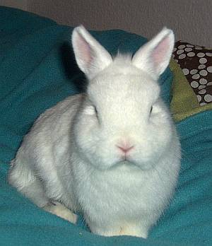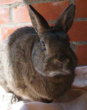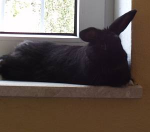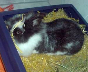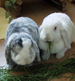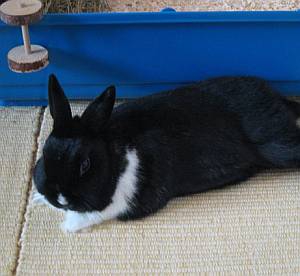 Ruckbee (2,3 kg) lebte einige Zeit mit Bruder BlackJack zusammen, leider führten Streitigkeiten dazu, dass sie druch ein Gitter getrennt nebeneinander her leben mußen. Ruckbee ist eine kleine Schmusebacke und liebt es sich von Mensch und Kaninchenfreund verwöhnen zu lassen. Rank und schlank hat Ruckbee sein neues Zuhause bei einer lieben Kaninchendame namens Herkules gefunden, die ihr Glück nach langer Zeit des Alleinseins noch kaum fassen kann. Nach zögerlichen Anfängen liegen die beiden nun - kaum voneinander zu unterscheiden - in ihrem Häuschen und kuscheln.
