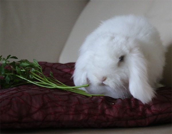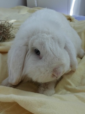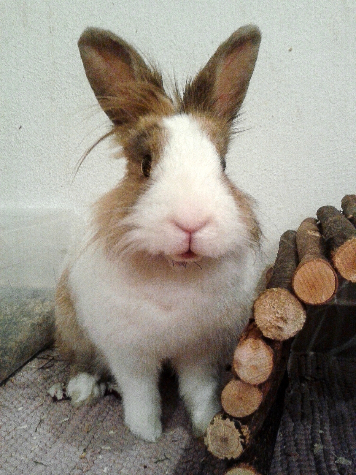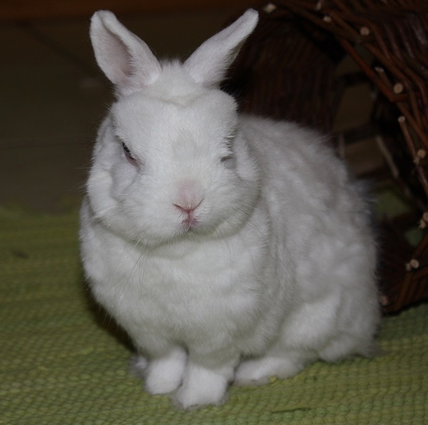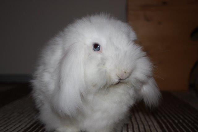 Olaf stammt wie Ronja, Samu und Ella aus einem Reitstall, wo die Besitzerin die Tiere nicht mehr versorgte und sich selbst überlies. Olaf saß in einem winzigen Käfig und zeigte starke Verhaltensauffälligkeiten. Außerdem hat er einen zerbissenen Hoden. Bei uns in der Pflegestelle ist Olaf dann schnell aufgetaut. Er benimmt sich jetzt wie ein richtiges Kaninchen. Man merkt ihm an, dass ihm das größere Platzangebot gut tut. Auch ist er sehr menschenbezogen und lässt sich gern streicheln. Da drückt er sein Köpfchen immer ganz flach auf den Boden und legt sich gemütlich hin. Sein langes Fell muss immer etwas in Form gebracht werden, es verfilzt aber nicht sehr stark. Olaf sucht ein schönes Zuhause bei einer Kaninchendame oder auch in einer Kaninchengruppe.