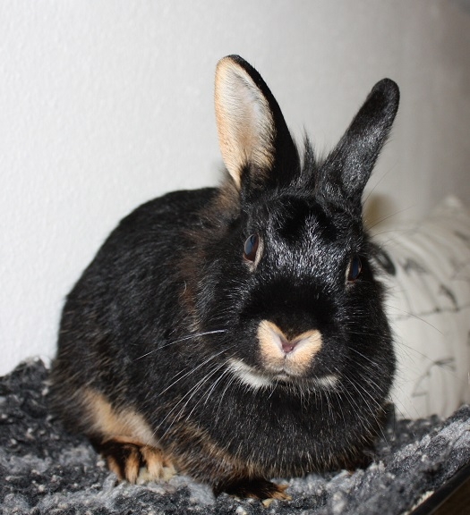 Toni wurde völlig verwahrlost draußen gefunden. Er war übersät mit Zecken, sein Hintern war voller Kotklumpen. Und er hatte alle möglichen Parasiten im Fell und im Kot. Die Finderin lies ihn tierärztlich versorgen und behandeln und dann auch noch kastrieren. Danach stand der Verdacht einer Myxomatoseerkrankung im Raum und der Tierarzt wollte ihn gleich einschläfern. Zwei weitere Tierärzte stellten eine andere Diagnose. So übernahmen wir Toni von der Finderin, um ihn einem kaninchenerfahrenen Tierarzt vorzustellen, da er rein optisch keine Anzeichen einer Myxomatoseerkrankung aufweist. Der Bluttest ergab keine Myxomatose. Toni wurde positiv auf EC getestet, er zeigt aber keinerlei Symptome. Bei Toni stand eine OP der Nickhautdrüse und der Roll-Lider an, die er super gut verkraftet hat. Eventuell ist immer wieder mal eine Gabe von Augentropfen erforderlich.Toni ist ein kleiner Sturkopf der genau weiß was will bzw. nicht will. Er ist ein ruhiger Genosse seiner Art, daher vermuten wir, dass er schon etwas älter ist. Er sucht eine Partnerin die sich nicht unterbuttern lässt event. würde sich Toni auch in einer Gruppe wohlfühlen.
