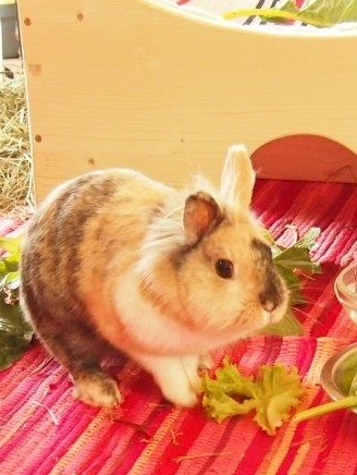 Keksi lebte die meiste Zeit seines Lebens alleine in einem kleinen Holzstall. Seine Familie hatte kaum mehr Zeit sich ausreichend um ihn zu kümmern. Eine Nachbarin wurde auf ihn aufmerksam und nahm sich seiner an. Sie beriet die Familie in Haltungsfragen und unterstütze bei der Versorgung von Keksi. Da er aber nicht für den Rest seines Lebens alleine bleiben sollte, konnte sie die Familie zur Vermittlung von ihm überzeugen und wendete sich an die Kaninchenhilfe. Keksi hat bereits seinen ersten TA-Check gut überstanden und kann nun kastriert werden. Nach seiner Kastrationsfrist (bis 1. März 2016) darf der neugierige und aufgeweckte Kaninchenmann zu einer netten Kaninchendame. Keksi ist sehr zutraulich. Er sucht von sich aus den Kontakt zum Menschen und fordert auch seine Streicheleinheiten ein.