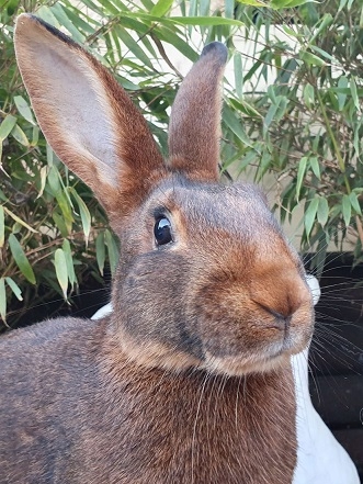 Sam kam zusammen mit Finn zu uns. Die Besitzerin hatte sich die Kaninchenhaltung anders vorgestellt. Da die beiden sich nicht mehr verstanden haben (unkastrierte Rammler verstehen sich ja bekanntermaßen nicht) wurden sie am Schluss getrennt voneinander gehalten und dann an uns abgegeben. Sam ist sehr schüchtern aber auch neugierig. Sam ist gegen Myxomatose ,RHD 1 und RHD 2 geimpft. Sam freut sich auf ein schönes Zuhause bei einem Weibchen oder in einer Gruppe.