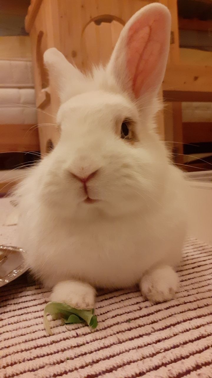 Jupiter kam mit mehreren Kaninchen aus einer Zuchtauflösung zu uns und wäre geschlachtet worden. Er musste sein bisheriges Leben in einer Bucht verbringen und diente zur Zucht, Führen an der Leine für Kaninhop und zur „therapeutischen“ Bespassung von Kindern. Zu seinem Charakter kann man noch nicht viel sagen. Nur, dass er schon etwas neugierig, aber auch bisher sehr schreckhaft ist. Wir hoffen, dass sich das bald legt und er ein lebensfreudiges Kaninchen sein darf. Wenn Jupiter geimpft und kastriert ist, so wie seine Kastrafrist vorbei ist, darf der hübsche Kaninchenmann in ein neues Zuhause mit Kaninchen-Gesellschaft ziehen.