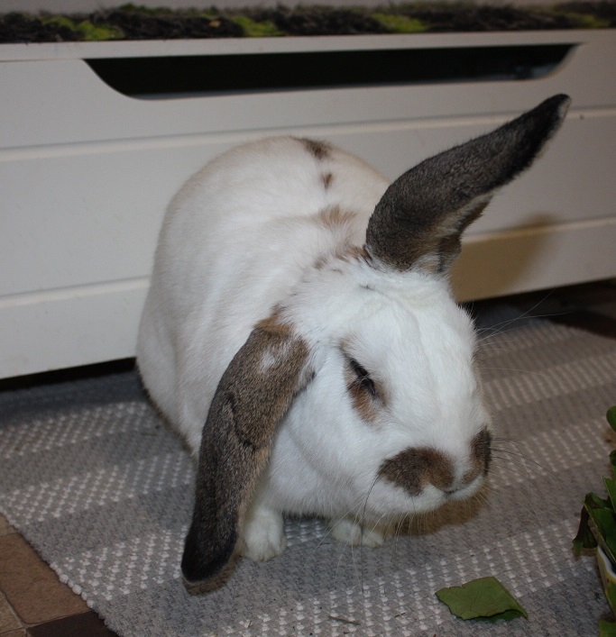 Finn kam zusammen mit Sam zu uns. Die Besitzerin hatte sich die Kaninchenhaltung anders vorgestellt. Da die beiden sich nicht mehr verstanden haben (unkastrierte Rammler verstehen sich ja bekanntermaßen nicht) wurden sie am Schluss getrennt voneinander gehalten und dann an uns abgegeben. Finn ist mittlerweile recht zutraulich. Setzt man sich ruhig zu ihm auf den Boden kommt er vorsichtig her und beschnuppert einem neugierig. Er lässt sich sogar meist ganz gerne streicheln.Finn ist gegen Myxomatose,RHD 1 und RHD 2 geimpft. Bewerbungen für den hübschen Kerl werden gerne entgegen genommen.