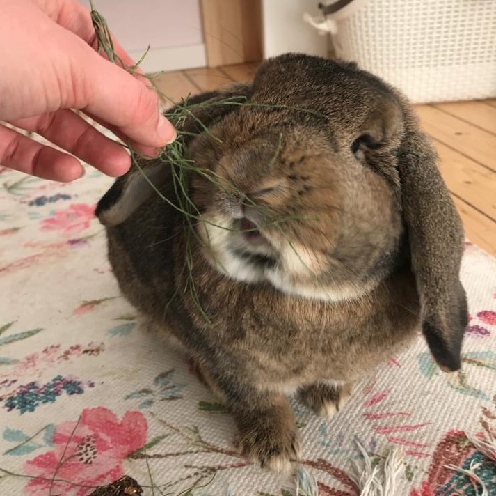 Ioh kam zu uns, als ein Züchter aufgrund persönlicher Lebensumstände stark reduzieren musste. Da er seine Tiere nicht schlachten wollte, versuchte er sie kostenlos in gute Hände zu vermitteln und wendete sich dafür auch an Tierschutz-Gruppen bei Facebook. Bei Abholung vor Ort waren jedoch noch doppelt so viele Kaninchen da, als angegeben. Spontan lies er sich dazu überreden, alle Tiere inklusive Zuchtrammler abzugeben, wenn diese gut vermittelt werden. Und auf der dringenden Suche nach weiteren Plätzen kam die kleine Ioh so zu uns auf Pflegestelle. Ioh ist ein sehr neugieriges und verspieltes Widder-Mädchen. Heutunnel, Weidenbälle und Kuscheln liebt sie jetzt schon nach kurzer Zeit. Und wenn ihre Pflegemama ins Zimmer kommt, ist sie sofort da und hoppelt um sie herum. So ganz stubenrein ist sie noch nicht. Aber es landet immer mehr im Kaninchenklo. Ioh ist vollständig geimpft ist und kann in ihr Traumzuhause bei einem kastrierten Rammler oder in eine Gruppe ziehen.