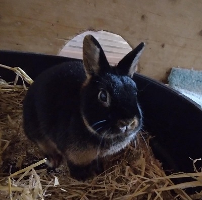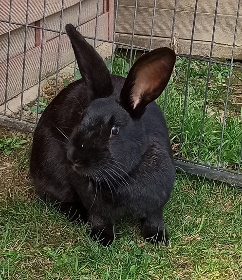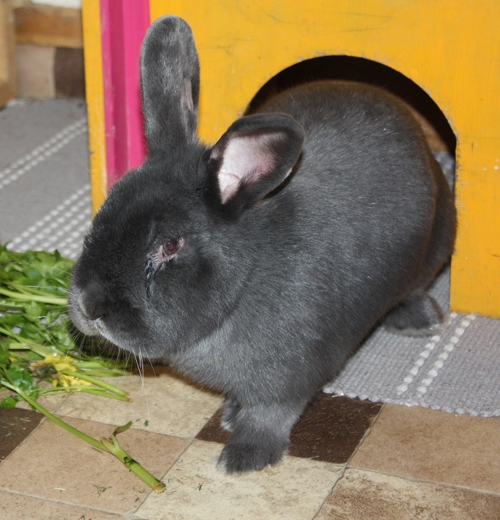 Wanda und Iva kamen vor Kurzem als Notfall zu uns. Die Halterin ist verstorben und sie waren einige Tage unversorgt. Dies haben sie zum Glück gut überstanden. Neben ihrem großen Hunger haben sie jedoch auch Würmer und Kokzidien mitgebracht, die wir zurzeit behandeln. Ansonsten ist Wanda gesund und munter. Wanda ist gegen RHD1,RHD 2 und Myxo geimpft. Unsere schwarze Schönheit hat ein wunderbares Zuhause gefunden.