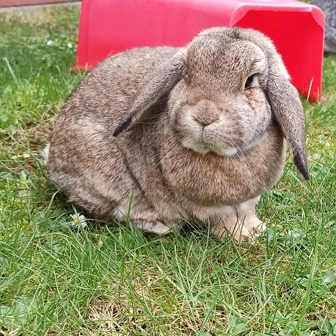 James kam aus einer Haltungsaufgabe zu uns. Der siebenjährige Zwergwidder sollte laut vorherigem Tierarzt ggf. Zahnpatient werden. Da die Halterin Angst vor den Kosten hatte, hat sie uns gefragt, ob wir ihn übernehmen und dies prüfen können. Dies haben wir getan. Die Kontrolle bei unserer Kaninchen- und Zahnspezialistin ergab, dass seine Zähne nicht 100 % aufeinander stehen, sie sich aber ausreichend von alleine abnutzen und es hier derzeit keinen Handlungsbedarf gibt. Es sind keine Spitzen vorhanden, die Zähne sind gleichmäßig abgenutzt und soweit in Ordnung. Dennoch wäre es nicht verkehrt, wenn diese zukünftig im Blick behalten werden. Er reagiert auf Knollengemüse und Obst mit Hefen, was aber bei reiner Grünfütterung kein Problem ist. James ist kastriert und gegen RHD 1, RHD 2 und Myxomatose geimpft. Er ist ein eher unterwürfiger Kastrat, sehr lieb und neugierig. Er lebte früher in einer Dreiergruppe und hat sich sehr verträglich gezeigt. James ist die Außenhaltung gewohnt und kann auch weiterhin in Außenhaltung leben. Eine schöne Innenhaltung wäre auch denkbar, er zeigt sich bisher aber nicht stubenrein. James sucht ein Zuhause in Kaninchengesellschaft.
