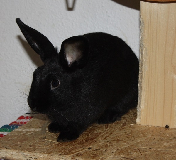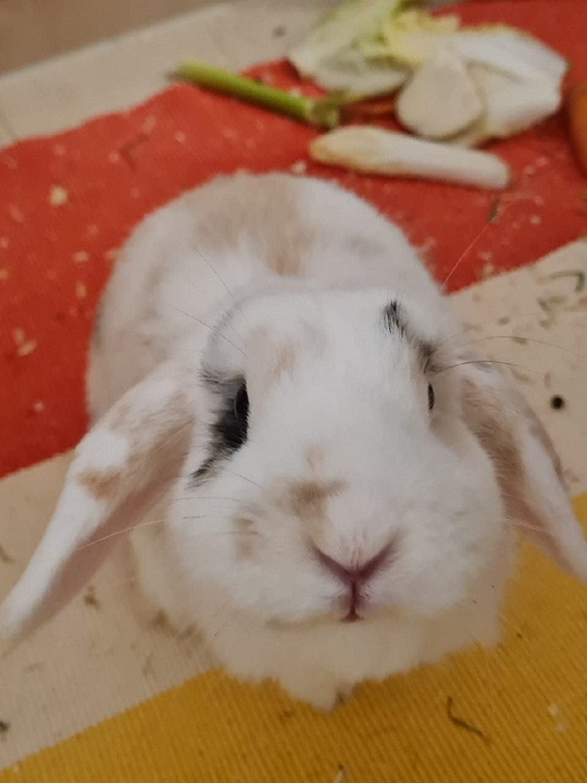 Whity kam mit ihrer Mutter Bella zu uns. Die hochschwangere Halterin wurde von ihrem Freund verlassen, der seine Kaninchen zurückgelassen hat. Da ihr eine Versorgung nicht mehr möglich war, hat sie um Aufnahme gebeten. So kamen die beiden zu uns. Whity und ihre Mutter Bella zeigen sich sehr verträglich und sind unglaublich zutraulich. Möchte man in das Gehege gehen, muss man aufpassen, wohin man tritt, denn bei jedem Schritt wird man verfolgt und umwuselt. Wenn man das Gehege in der Hocke reinigt, kann es schon mal passieren, dass man plötzlich einen blinden Passagier auf dem Rücken hat. Der Tierarztcheck verlief positiv. Whity hat keine gesundheitlichen Probleme und die Kotprobe war sauber. Sie hat seit Geburt ein ganz leichtes Schwanken in der Hinterhand, was aber kaum auffällt und sie in keinster Weise beeinträchtigt. Sie wurde schon vollständig geimpft. Unsere süsse Whity hat ein tolles Zuhause gefunden.